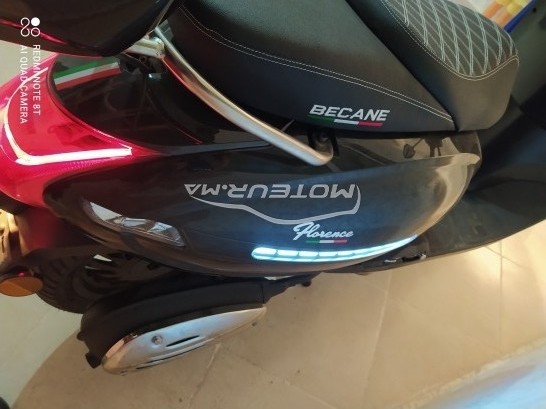 سكوتور بيكان فلورنس موديل 2022 أسود اللون مع حقيبة كبيرة تحت الكرسي وحقيبة أخرى في الوراء مناسبة لكل الأعمار، فيها مكان خاص بشحن الهاتف، وفيها مكان آخر لتثبيت كلي usb