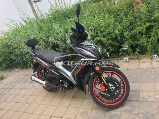 دراجة نارية من نوع sanya fice r1000 بمحرك 70cc موديل 2021 بحالة جيدة، مع : حقيبة خلف الدراجة، غطاء واقي من البرد و خوذتين. المكان : مدينة الرحمة